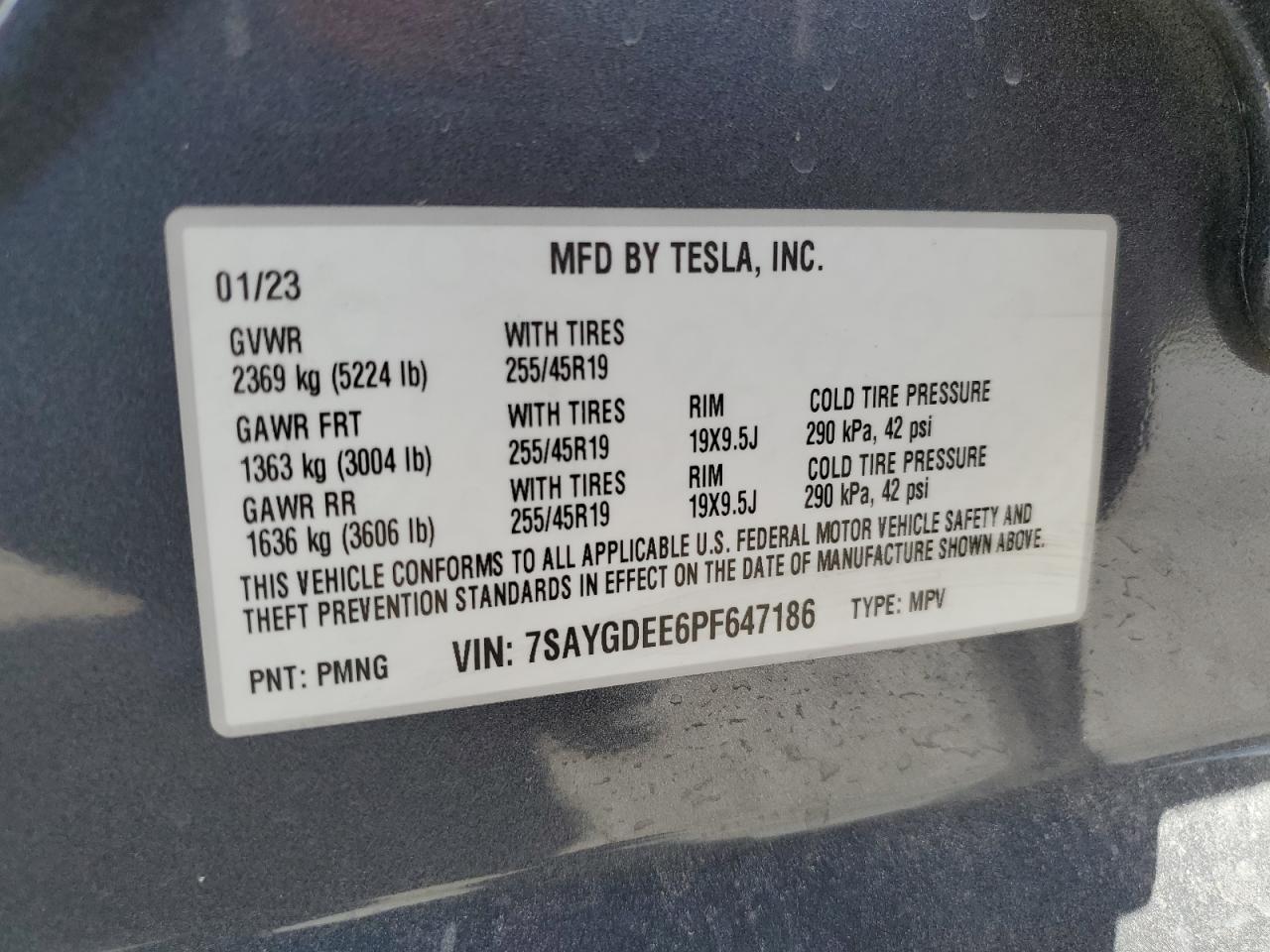 2023 TESLA MODEL Y VIN:7SAYGDEE6PF647186